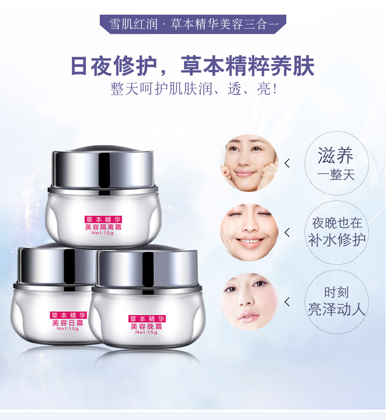 丽一汀雪肌红润三合一面霜套装隔离霜补水保湿提亮肤色套盒正品