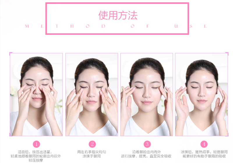 使用方法:彻底洁肤后,轻揉地涂抹于眼部周围即可。