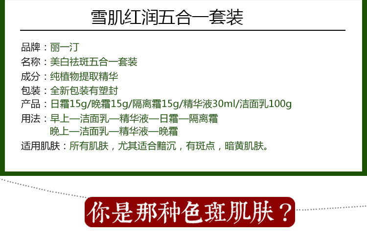 正品丽一汀白里透红五合一 经典版套装 雪肌红润