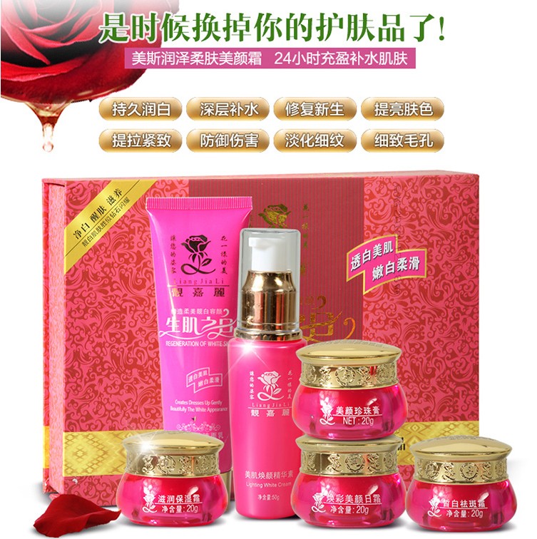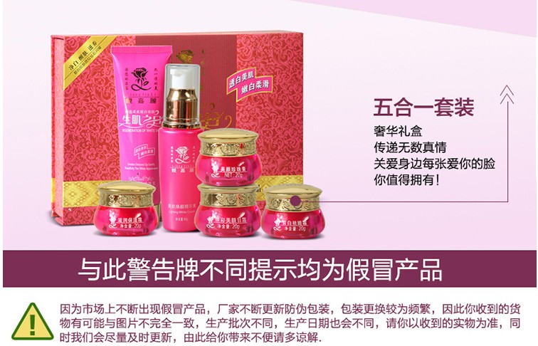 潘姿冰巧正品香港靓嘉丽白里透红生肌之白五合一美颜套装去斑霜